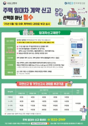 [ 중앙뉴스미디어 ] 이천시는 주택임대차 신고제 계도기간이 2025년 5월 31일로 종료됨에 따라, 2025년 6월 1일부터는 거짓신고, 지연신고 등 법률 위반 시 최대 100만 원 이하의 과태료가 부과된다고 밝혔다.
