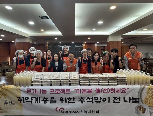 [ 중앙뉴스미디어 ] 남양주시자원봉사센터는 추석맞이 집중 주간을 맞이하여 9월 25일부터 오는 10월 3일까지 약 1,300명의 관내 취약계층을 대상으로 ‘추석맞이 전 나눔 활동’을 펼쳤다.