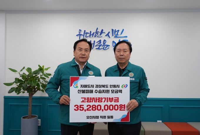 [ 중앙뉴스미디어 ] 오산시 최근 대형 산불로 큰 피해를 본 자매도시 경상북도 안동시의 피해 수습을 위한 고향사랑기부금 3천528만 원을 전달했다.