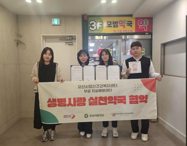 [ 중앙뉴스미디어 ] 오산시정신건강복지센터 부설 자살예방센터는 지난 3일, 4일 양일간 자살예방 및 생명존중문화 조성을 위해 모범약국, 삼성약국, 큰사랑약국, 예일약국, 도담약국, 봄날약국 등 관내 약국 6곳과 생명사랑 실천약국 업무 협약을 체결했다고 전했다.