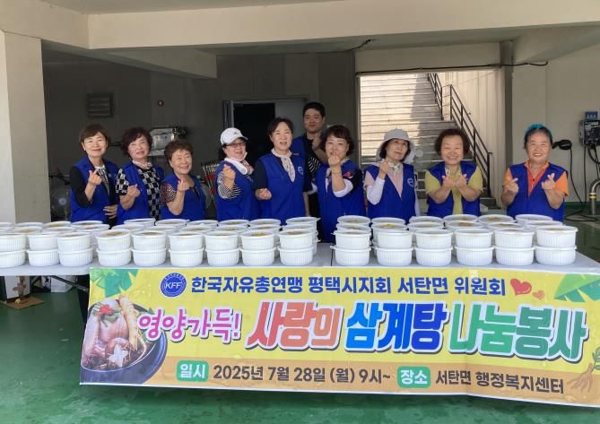 이동복 서탄면장은 “바쁘신 와중에도 정성을 다해 행사를 준비하신 한국자유총연맹에 감사드리며, 이 삼계탕 한 그릇이 취약계층 이웃들에게 기운을 북돋는 보양식이 되기를 바랍니다. 앞으로도 지역사회가 함께 건강하고 시원한 여름을 보낼 수 있도록 힘쓰겠다”라고 말했다.