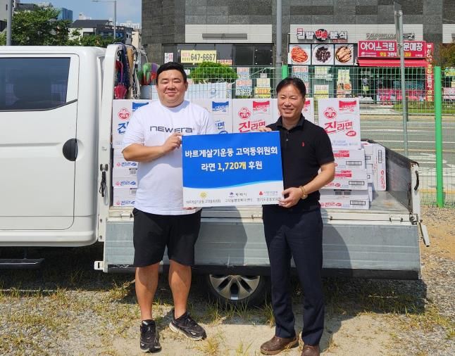 [ 중앙뉴스미디어 ] 바르게살기운동 고덕동 위원회는 지난 24일 평택시 고덕동 행정복지센터를 방문해 관내 취약계층을 위해 라면 86박스(1720개)를 기부했다.