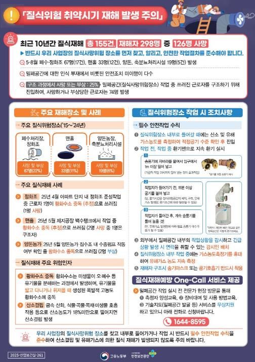 이번 교육은 여름철 기온 상승으로 맨홀이나 공기변실 등 밀폐 공간에서 질식사고 위험이 커짐에 따라 이루어졌다. 특히 황화수소, 일산화탄소, 탄소 결핍 등으로 인한 밀폐 공간 질식사고는 사망률이 높은 중대재해로, 최근 10년간 밀폐 공간 질식 재해로 126명이 사망한 바 있다.