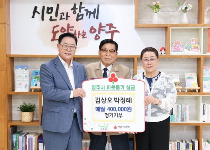 [ 중앙뉴스미디어 ] 양주시는 20일, 참전유공자인 김상오(81)씨와 배우자 박정례(73)씨가 매월 40만원씩 이웃돕기 성금을 정기적으로 기탁하기로 약정했다고 밝혔다.