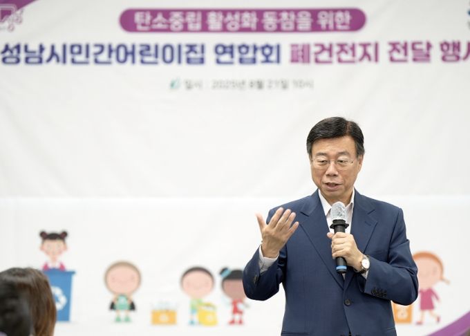 [ 중앙뉴스미디어 ] 신상진 성남시장이 21일 오전 10시 성남시청 모란관에서 열린 ‘폐건전지 전달식’에 참석해 환경보호 실천에 나선 민간어린이집 소속 어린이들과 보육교직원들을 격려했다