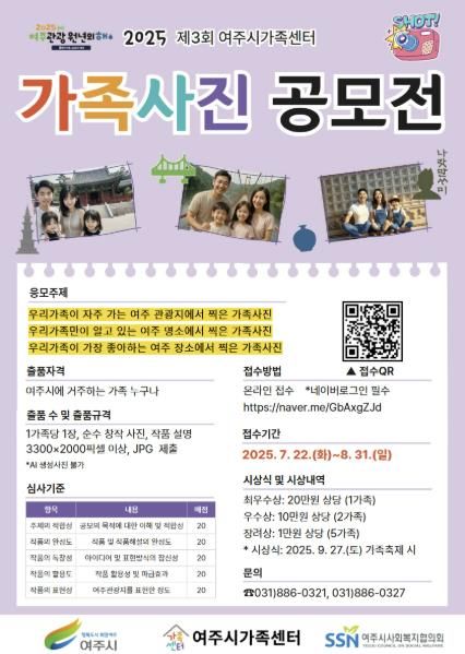 박지현 센터장은 “이번 공모전을 통해 여주시의 다양한 매력을 가족의 시선으로 담아내길 기대하며, 시민 여러분의 많은 관심과 참여를 바란다.”라고 전했다.