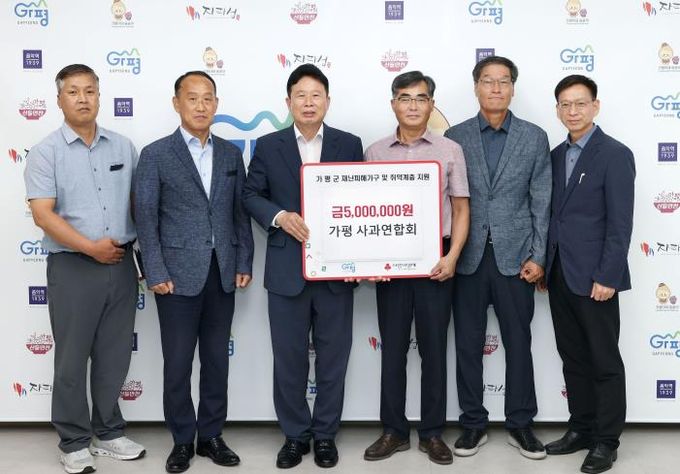 [ 중앙뉴스미디어 ] 가평군사과연합회는 21일 가평군청에서 서태원 군수와 농업기술센터 소장 등 관계자, 사과연합회 임원 등이 참석한 가운데 수해 이웃돕기 성금 500만원을 기탁했다.