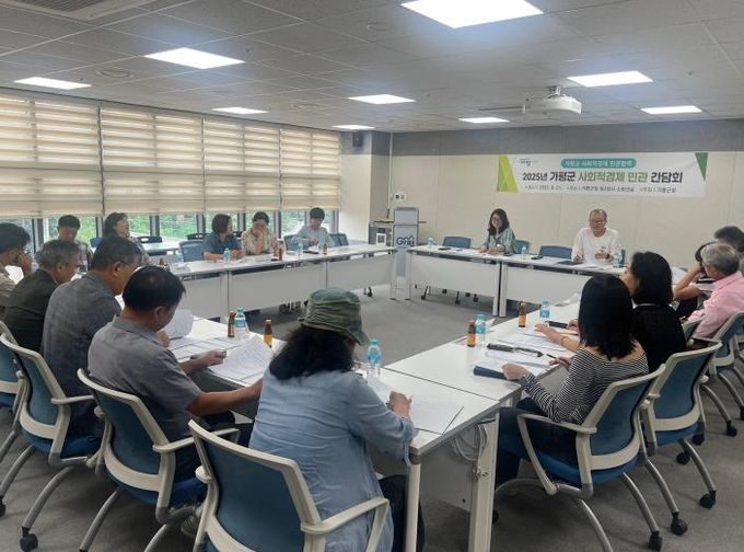 [ 중앙뉴스미디어 ] 가평군은 21일 제2청사 소회의실에서 관내 사회적경제기업 관계자 16명이 참석한 가운데 ‘사회적경제 민관 간담회’를 열었다.