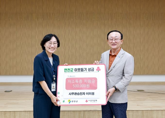 [ 중앙뉴스미디어 ] 연천군은 사무관으로 승진한 통일평생교육원 이미정 원장이 군청 팀장모임인 수레회에서 받은 축하금 일부를 어려운 이웃을 위해 기탁했다고 25일 밝혔다.