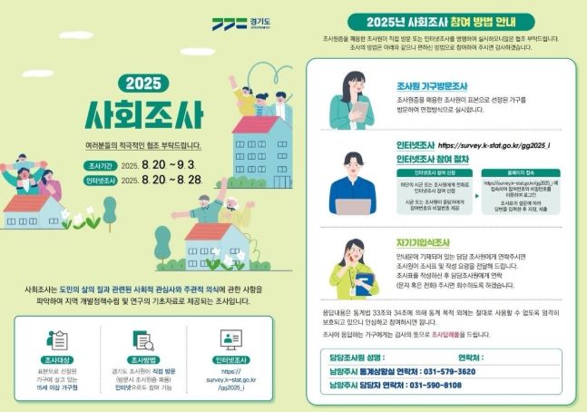 [ 중앙뉴스미디어 ] 남양주시는 이달 20일부터 9월 3일까지 ‘2025년도 남양주시 사회조사’를 실시한다고 27일 밝혔다.