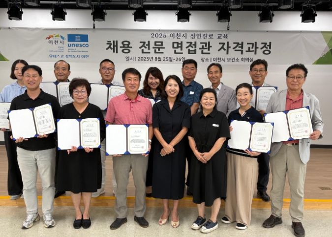 [ 중앙뉴스미디어 ] 이천시는 지난 8월 26일 성인 진로 교육과정 참여자 13명이 ‘채용 전문 면접관 자격증’을 취득했다고 밝혔다.