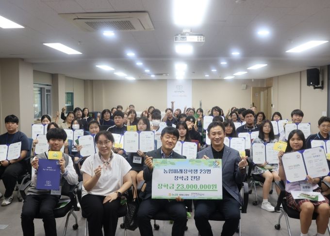 [ 중앙뉴스미디어 ] 안양시 인재육성재단은 지난 29일 농협 안양시지부(지부장 이상하)의 기부금을 바탕으로 관내 지역아동센터와 연계해 선발한 23명의 장학생들과 함께하는 ‘2025 농협 미래 장학생 장학증서 수여식’을 개최했다고 1일 밝혔다.