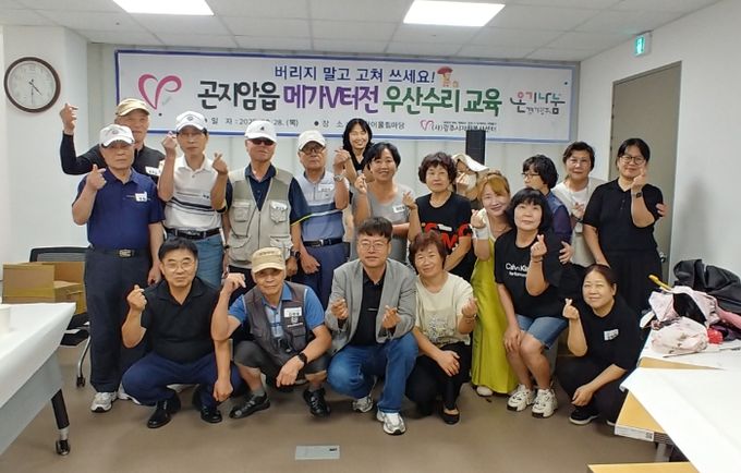 [ 중앙뉴스미디어 ] 사단법인 광주시자원봉사센터는 지난 28일 곤지향어울림마당에서 곤지암읍 메가V터전 사업 일환으로 ‘우산수리교육’을 진행했다.