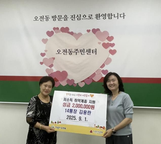 한편, 이번 기부금은 경기사회복지공동모금회를 통해 오전동의 취약계층 이웃들에게 지원될 예정이다.