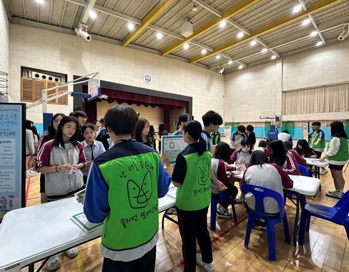 이번 캠페인은 청소년들이 일상 속 스트레스를 건강하게 인식하고 건강하게 해소할 수 있도록 지원하기 위해 마련됐다. 점심시간을 활용해 △스트레스 OX퀴즈 △자가진단 검사 △릴레이 고민상담 등 다양한 체험프로그램을 운영해 학생들의 높은 호응을 얻었다.