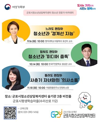 [ 중앙뉴스미디어 ] 군포시청소년재단 군포시청소년상담복지센터는 오는 9월 16일 청소년상담복지센터(수리산로 112)에서 ‘청소년의 경계선 지능’을 주제로 한 전문교육을 실시한다.