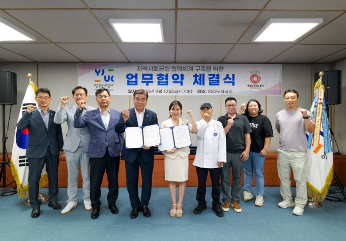 [ 중앙뉴스미디어 ] 양주도시공사는 9월 12일, 지역 봉사단체인 ‘양주사랑도너츠’와 지역사회공헌 협력체계 구축을 위한 업무협약(MOU)을 체결했다고 밝혔다.