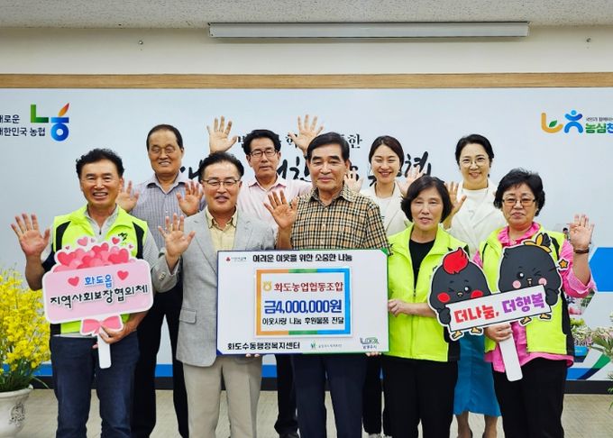 유형식 화도수동행정복지센터장은 “취약계층을 위한 관심이 절실한 시기에 소중한 나눔을 실천해 주신 화도농협에 깊이 감사드린다”며 “이번 기부가 명절을 외롭게 보내는 이웃들에게 따뜻한 위로가 되길 바란다”고 밝혔다.
