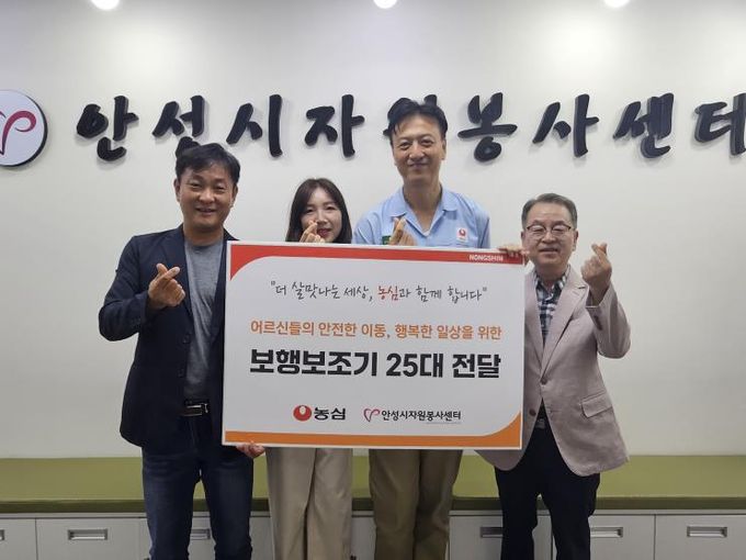 ㈜농심 안성공장은 저소득층 어르신들을 위해 25대의 보행 보조기를 안성시자원봉사센터에 전달했으며, 이는 거동이 불편해 어려움을 겪는 어르신들의 생활 편의와 안전을 높이는 데 쓰인다.