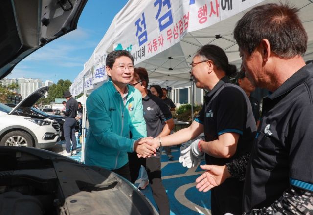 [ 중앙뉴스미디어 ] 이상일 용인특례시장은 21일 역북동 가상현실 스포츠체험센터 주차장에서 열린 장애인차량 무상점검 행사를 찾아 경기도자동차전문정비사업조합 용인시지회 조합원을 격려했다.