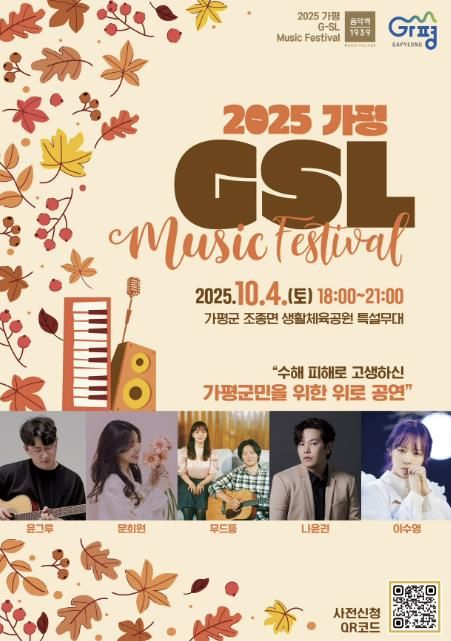 [ 중앙뉴스미디어 ] 가평군은 오는 10월 4일, 토요일 조종면 생활체육공원에서 ‘2025 가평 G-SL’ 뮤직페스티벌 공연을 개최한다. 올해 네 번째 G-SL 무대인 10월 뮤직페스티벌은 지난 여름 집중호우로 인한 피해로 지치고 고생한 군민들에게 위로와 희망의 메시지를 전하기 위해 조종생활체육공원 특설무대에서 열린다.