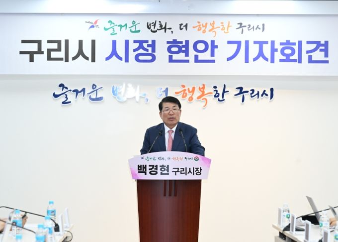 [ 중앙뉴스미디어 ] 백경현 구리시장은 지난 24일 시청 3층 상황실에서 기자회견을 열고, 시민들에게 추석 인사와 함께 시 승격 40년 기념 시민의 날 행사 및 구리 코스모스 축제를 소개하고, 최근 일부 언론보도에 대한 시의 공식 입장을 밝혔다.