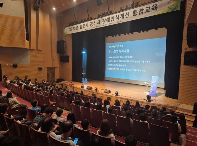 [ 중앙뉴스미디어 ] 김포시는 지난 23일 김포아트홀 공연장에서 전 직원을 대상으로 장애 인식 개선 교육을 실시했다.