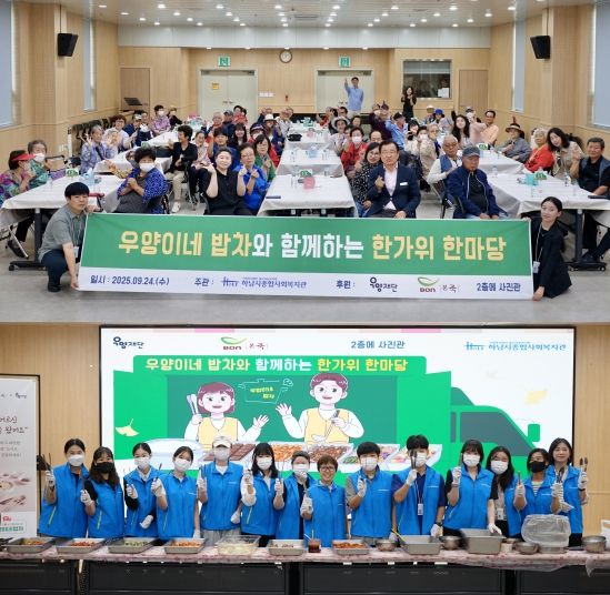 [ 중앙뉴스미디어 ] 하남시종합사회복지관은 24일 복지관 4층 대강당에서 ‘우양이네 밥차와 함께하는 한가위 한마당’을 개최했다. 우양재단과 본죽의 후원, ‘2층에 사진관’의 재능기부로 진행됐으며, 명절을 앞두고 사회적 고립이 우려되는 저소득 어르신 60명을 초청해 한가위 점심과 명절 선물, 장수사진 촬영 서비스를 제공했다.