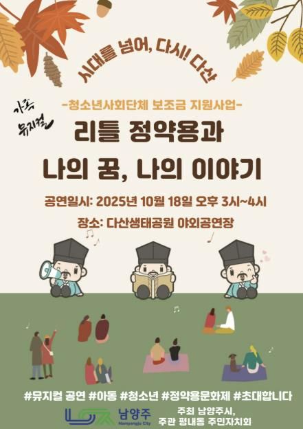 [ 중앙뉴스미디어 ] 남양주시는 오는 10월 18일 조안면 다산생태공원에서 아동·청소년 대상 가족뮤지컬인 ‘리틀 정약용’을 선보인다.