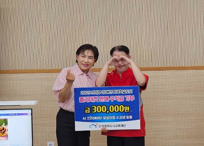 [ 중앙뉴스미디어 ] 의정부도시교육재단은 장애인평생학습도시 사업의 일환으로 운영된 'AI 크리에이터 양성과정' 장애인 수강생들이 직접 제작한 상품 판매 수익금을 지역사회에 기부했다고 30일 밝혔다.