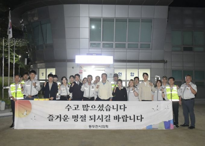 김승호 동두천시의회 의장은 “시민들의 안전하고 편안한 명절을 위해 묵묵히 애써주시는 분들의 노고에 깊이 감사드린다”며 “앞으로도 행정에서 적극 지원해 안전한 도시, 행복한 동두천을 만드는 데 최선을 다하겠다”고 말했다.