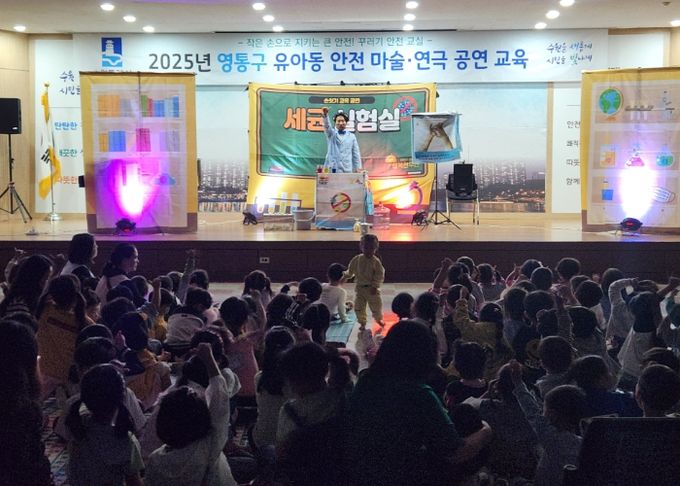 [ 중앙뉴스미디어 ] 수원시 영통구는 2025. 10. 13. 영통구청 대회의실에서 관내 유아를 대상으로 안전한 위생 습관을 형성하기 위한 ‘찰리박사의 세균실험실’ 체험형 안전마술·연극 공연 교육을 실시했다.
