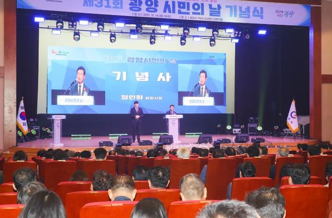 [ 중앙뉴스미디어 ] 광양시는 10월 14일 오전 10시 광양시 커뮤니티센터에서'제31회 광양시민의 날' 기념식을 개최했다고 밝혔다.