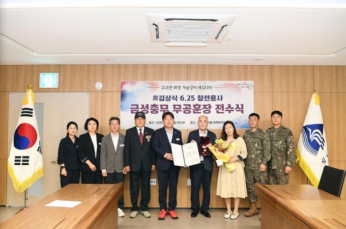 [ 중앙뉴스미디어 ] 부산 동래구는 지난 13일 6․25전쟁에 참전해 무공을 세운 고(故) 김상식님의 자녀 김형원씨에게 금성충무 무공훈장과 훈장증을 전수했다.