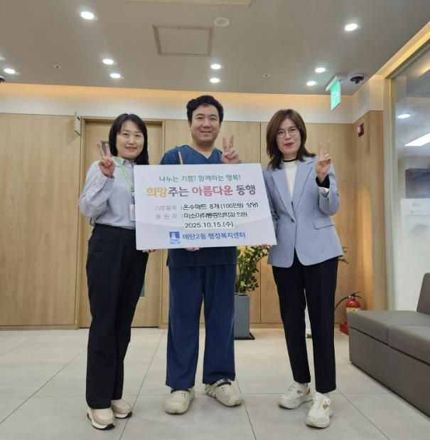 [ 중앙뉴스미디어 ] 지난 15일, 수원시 영통구 소재 미소마취통증의학과의원은 관내 저소득 어르신들이 따뜻한 겨울을 보낼 수 있도록 매탄2동 행정복지센터에 100만원 상당의 온수매트 8세트를 기부했다.