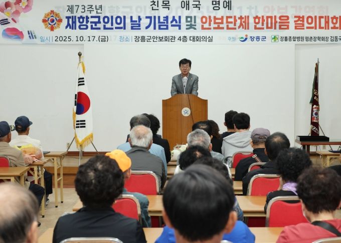 [ 중앙뉴스미디어 ] 장흥군은 17일 안보회관에서 제73주년 재향군인의 날 기념식 및 안보결의대회를 개최했다고 밝혔다.
