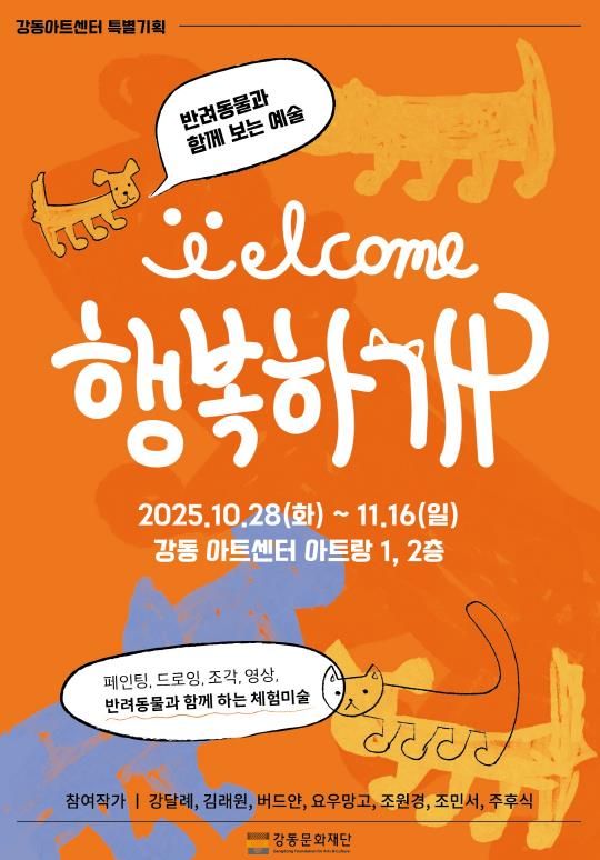 [ 중앙뉴스미디어 ] 강동문화재단은 오는 10월 28일부터 11월 16일까지 강동아트센터 아트랑에서 반려동물과 함께 예술을 경험할 수 있는 전시 《행복하개展》을 선보인다.