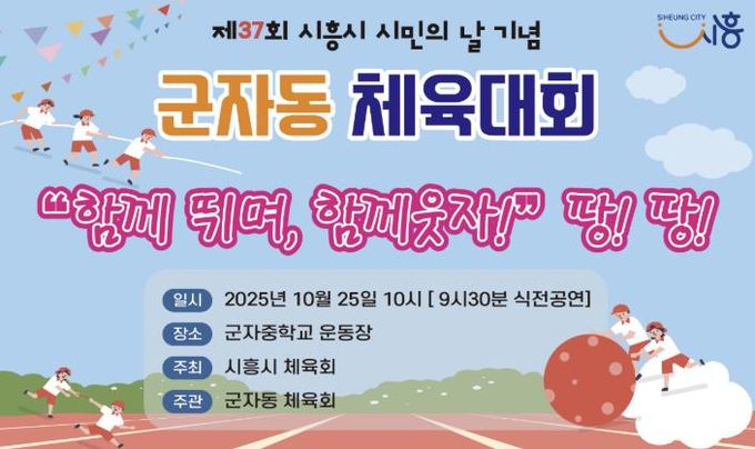 [ 중앙뉴스미디어 ] 시흥시 군자동 체육회는 제37주년 시민의 날을 맞아 오는 25일 군자중학교 운동장에서 ‘함께 뛰며, 함께 웃자’ 체육대회를 개최한다.