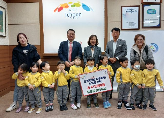 [ 중앙뉴스미디어 ] 이천시 장호원읍 두루말어린이집은 11월 11일, 어린이들과 함께 장호원읍행정복지센터에 방문해 군가족의 날 아나바다 시장놀이 행사의 수익금 815,000원을 전달했다.