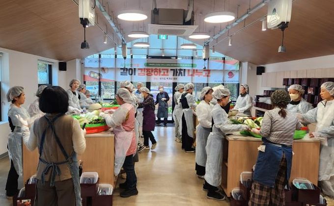 [ 중앙뉴스미디어 ] 경기도 먹거리광장은 지난 25~26일 이틀간 사계주방 연말 특별프로그램 ‘같이 김장하고 가치 나누고’를 통해 도민들과 함께 김장을 하고 완성한 김치를 인근 사회복지기관에 전달하며 나눔을 실천했다.