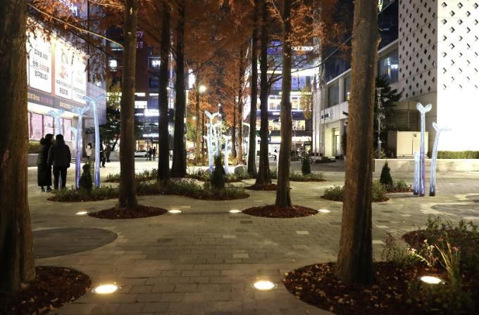 또한 서현역을 마주하는 메타세쿼이아 길에는 새싹 조형물과 바닥 센서 조명을 도입해, 주변 상업지역 대비 어두웠던 보행환경을 밝히고 야간 안전성을 크게 높였다.