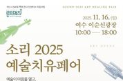 [ 중앙뉴스미디어 ] 여수시는 오는 11월 16일 이순신광장에서 ‘소리 2025 예술치유페어’를 개최한다. 이번 행사는 ‘소리를 느끼고, 마음을 치유하다’를 주제로 음악·악기·미술 등 다양한 감각 기반 콘텐츠를 시민이 직접 체험하며 예술적 치유를 경험할 수 있도록 마련됐다. 단순 전시 중심의 행사에서 벗어나 공연·체험·전시를 결합해 도심의 문화적 활력과 시민 정서 회복에 기여할 수 있도록 기획됐다. 특히 지역 예술기업, 공예·악기팀 등 다양한 업체가 참여해 지역 기반의 예술 치유 네트워크를 형성하고 마이스 특화전시 사업의 취지인 지역 산업 및 예술기업과의 연계를 강화하는 계기가 될 전망이다. 행사장 내 ‘소리놀이터’에는 무대와 포토존이 운영되며 시간대별 프로그램이 진행된다. 오전 오프닝 체험을 시작으로 국악과 힐링 악기가 함께하는 특별 무대가 펼쳐지며 시민이 직접 악기를 시연해보는 관객 참여형 콘텐츠도 마련된다. 김상욱 여수시 관광과장은 “이번 ‘소리 2025 예술치유페어’는 시민의 심리적 안정과 문화 향유 기회 확대는 물론 여수 마이스 특화전시사업의 방향인 지역 예술 콘텐츠 육성과 도