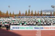 [ 중앙뉴스미디어 ] 창원특례시는 14일 창원스포츠파크 보조경기장에서 열린 2025 창원시 새마을지도자 한마음대회에서 약 2,000여 명이 참석한 가운데 ‘시민 공감 릴레이 캠페인’의 세 번째이자 마지막 퍼포먼스를 성황리에 진행했다고 밝혔다. 이번 퍼포먼스는 창원특례시가 직면한 특례시 지위 불안정 문제와 실질적인 권한 부족 문제를 시민과 함께 공유하고, 비수도권 유일의 특례시로서 특례시 기준 변경과 특례시 지원 특별법 조기 제정의 필요성을 널리 알리기 위해 마련된 ‘시민 공감 릴레이 캠페인’의 마지막 순서다. 이날 현장에서는 두 대의 드론이 상공으로 동시 이륙해 ‘비수도권 특례시 기준 변경’, ‘특례시 지원 특별법 조기 제정’ 문구가 적힌 대형 현수막을 펼치며 창원시의 염원을 하늘 위에 선명하게 드러냈다. 이어 참석자들은 글자모형과 손피켓을 일제히 들어 올리며 특례시 지위사수와 특별법 제정을 향한 시민들의 의지를 강하게 표출했다. 또한, 사회자의 “비수도권 특례시 기준변경”, “특례시 지원 특별법 조기제정” 선창에 맞춰 참석자 전원은 힘차게 “할 수 있다!”를 외치며 현장의 분위기를 더욱 뜨겁게