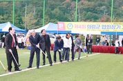 [ 중앙뉴스미디어 ] 의령군 그라운드골프협회(회장 하만용)는 13일 오전 10시 30분, 의령읍 서동 제2다목적구장에서 제4회 의령군협회장기 그라운드골프대회를 개최했다. 이번 대회에는 오태완 군수, 김규찬 의장, 김채용 도 그라운드회장 등 기관·사회단체장과 선수 등 300여 명이 참석했으며, 12개 클럽이 참가한 단체전과 개인전에서 그동안 갈고닦은 기량을 겨뤘다. 단체전에서는 가례면이 우승을 차지했으며, 대의면과 부림면이 각각 2위와 3위를 차지했다. 개인전 우승은 의령읍클럽 정석자 선수가 차지했다. 그라운드골프는 지면 위의 공을 골프채로 쳐서 홀에 넣는 스포츠로, 거리나 홀 수를 자유롭게 설정할 수 있어 남녀노소 누구나 쉽게 즐길 수 있다. 오태완 군수는 인사말을 통해 “그동안의 염원이었던 그라운드골프 전용구장에서 대회를 개최하게 되어 매우 기쁘다”며, “이번 대회가 동호인 간 친목과 우의를 다지는 뜻깊은 시간이 되길 바란다”고 말했다. [뉴스출처 : 경상남도 의령군]