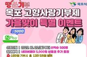 [ 중앙뉴스미디어 ] 목포시는 깊어가는 가을을 맞아 10월 20일부터 ‘땡스기부~고향사랑기부제 가을맞이 특별 이벤트’를 진행한다고 밝혔다. 이번 이벤트는 10월 20일부터 고향사랑기부제를 통해 목포시에 10만 원 이상 기부하고 답례품을 신청한 기부자를 대상으로 하며, 별도의 응모 절차 없이 자동 참여된다. 선착순 500명에게 네이버페이 포인트 5,000원 쿠폰이 지급된다. 네이버페이 포인트 쿠폰은 간편하게 사용할 수 있는 디지털 경품으로, 기부자들이 실질적인 혜택을 체감할 수 있도록 마련됐다. 특히 10만 원 기부 시 ▲전액 세액공제 혜택 ▲3만 원 상당의 답례품 ▲5천 원 포인트 추가 혜택까지 받아 만족도가 더욱 높을 것으로 기대된다. 시는 이번 이벤트를 통해 고향사랑기부제 참여를 확대하고 건전한 기부문화 확산을 도모할 계획이다. 시 관계자는 “풍성한 가을을 맞아 목포에 따뜻한 마음을 보내주신 기부자분들께 감사드린다”며 “고향을 사랑하는 마음이 지역 발전으로 이어질 수 있도록 많은 관심과 참여를 부탁드린다”고 말했다. 이번 이벤트 관련 자세한 내용은 목포시 누리집과 SNS, 또는 전화를 통해 확인