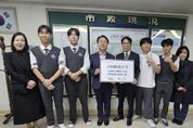 [ 중앙뉴스미디어 ] 군포e비즈니스고등학교 마케팅과 학생들이 ‘청소년 비즈쿨(Biz-Cool)’ 창업체험 교육을 통해 얻은 수익금 전액을 군포시청에 기탁했다. 학생들은 전문교과 ‘매장판매’ 수업에서 배운 내용을 바탕으로 상품을 직접 기획·판매하며 창업의 전 과정을 경험했으며 이를 통해 얻은 수익금을 자발적으로 모금해 지역의 어려운 이웃을 돕기로 뜻을 모았다. 장인섭 교장은 “배움을 실천으로 이어가며 지역사회에 따뜻한 마음을 전한 학생들이 자랑스럽다”며 “앞으로도 실력과 인성을 겸비한 인재로 성장할 수 있도록 지원하겠다”고 말했다. 군포시 관계자는 “학생들이 스스로의 노력으로 얻은 결실을 지역의 어려운 이웃을 위해 기탁하여 주심에 감사드린다”며 “이러한 청소년들의 선한 영향력이 군포 전역으로 확산되길 바란다”고 말했다. 기탁금은 경기사회복지공동모금회를 통해 군포 관내 저소득 가정 지원에 사용될 예정이다.