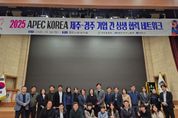 [ 중앙뉴스미디어 ] 경주시는 지난 28일 시청 알천홀에서 ‘2025 APEC 정상회의’ 개최를 계기로 제주테크노파크와 (사)중소기업융합대구경북연합회 경주융합회 간 지역 기업 상생협력 간담회를 개최했다. 이번 간담회는 글로벌 협력과 개방형 혁신의 흐름 속에서 지역 간 전략적 연계를 강화하고, 중소기업의 기술 및 비즈니스 협업 기반을 확대하기 위해 마련됐다. 특히 이번 행사는 지난 9월 체결된 ‘경주융합회-제주테크노파크 업무협약(MOU)’의 후속 조치로, 양 기관과 경주시가 함께 △기술 교류 촉진 △공동사업 발굴 △산업·관광 연계 협력 등 실질적 상생협력 방안을 논의하는 자리가 됐다. 이날 회의에는 손대기 경주시 기업투자지원과장을 비롯해 김상헌 경주융합회장 및 회원사 대표, 부창산 제주테크노파크 기업지원단장 등 관계자 40여 명이 참석해 활발한 교류를 이어갔다. 간담회에서는 △경주시의 중소기업 지원제도 및 정책 방향 △제주테크노파크의 R&D 협력 사례 △경주융합회의 지역 기업 간 네트워크 강화 방안 등이 발표됐으며, 참석자들은 기술·인력·자원 측면에서 상호보완 가능한 협력 모델을 구체화하기로 뜻을 모