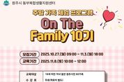 [ 중앙뉴스미디어 ] 원주시 동부복합생활지원센터는 오는 11월 8일 주말 가족 프로그램 ‘온 더 패밀리(On The Family)’ 10기 과정을 운영한다. 센터는 가족이 서로의 소중함을 느끼고 소통하는 시간을 가질 수 있도록 부모와 자녀가 함께하는 교육과 따로 하는 교육으로 나눠 다양하고 풍성한 가족 프로그램을 운영하고 있다. 이번 10기 프로그램은 ▲자녀와 함께하는 즐거운 제과제빵 ▲아빠와 만드는 맛있는 요리교실 ▲아이와 신나는 홈패션 소품 만들기 ▲알콩달콤 빼빼로 과자집 아이싱쿠키 꾸미기 ▲엄마와 딸이 함께하는 퍼스널컬러 클래스 ▲나도 방송 스타! 방송댄스 교실(자녀) ▲자녀와 소통을 위한 부모 심리학(부모) 등 총 7개 강좌로 진행된다. 18세 이하 자녀를 동반한 원주시민은 누구나 무료로 강의를 들을 수 있으며, 재료비는 본인 부담이다. 참여 신청은 10월 27일부터 11월 3일까지 원주시 통합예약플랫폼에서 선착순으로 접수한다. [뉴스출처 : 강원도 원주시]