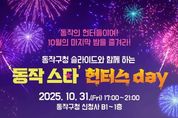 [ 중앙뉴스미디어 ] 동작구가 오는 10월 31일 오후 5시부터 9시까지, 구청 신청사에서 청소년이 직접 기획하고 운영하는 제1회 핼러윈 축제'‘동작 스타’ 헌터스day'를 개최한다고 밝혔다. 이번 행사는 신청사의 상징인 슬라이드 ‘동작 스타’와 연계해 관내 청소년들의 자치 역량을 키우고, 신청사 내 특별임대상가 활성화를 위해 기획됐다. 영화 ‘케이팝 데몬 헌터스’의 열풍을 고려해 ‘헌터스(Hunters)’ 콘셉트로 꾸며지며, 청소년과 구민이 함께 즐길 수 있는 다채로운 프로그램이 진행된다. 먼저 1번 게이트 앞에는 이색 조형물과 조명 장식을 갖춘 ‘포토존’과 가족 단위 방문객이 쉴 수 있는 ‘호박 테마 캠핑 텐트’가 설치된다. 1층 로비에서는 사당·동작·보라매 청소년센터 동아리의 댄스 공연이 열린다. 축제 분위기를 한층 높일 ‘코스튬 콘테스트’도 펼쳐진다. 10월 30일까지 선착순 20팀을 모집 중이며, 행사 당일 ‘베스트 3’에 선정된 팀 또는 개인에게는 풍성한 경품을 증정하고, 참가자 전원에게도 소정의 상품을 지급한다. 이와 함께 ‘동작 스타’는 매시 정각에 운영되며, 회차별 30