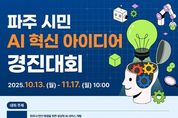 [ 중앙뉴스미디어 ] 파주시는 10월 13일부터 11월 17일까지 시민이 직접 참여하는 ‘파주 시민 인공지능(AI) 혁신 아이디어 경진대회’를 개최한다고 밝혔다. 이번 경진대회는 대한민국 국민 누구나 참여 가능하며, 인공지능(AI)을 활용해 행정과 시민 생활 속 다양한 문제를 해결할 수 있는 창의적 아이디어를 발굴하기 위한 시민 참여형 공모전으로, ‘인공지능(AI)과 함께하는 시민 중심의 파주, 인공지능(AI) 선도 도시’ 구현을 목표로 하고 있다. 개인 또는 팀 단위로 참가할 수 있으며, 참가자는 지정 주제(① 출판단지 활성화, ② 재해·재난 관리, ③ 동물 보호, ④ 도로 안전, ⑤ 교통 질서) 또는 자율 주제(파주시 현안 해결을 위한 생성형 인공지능(AI) 서비스 개발) 중 하나를 선택해 아이디어를 제출하면 된다. 예선은 온라인 방식으로 진행되며, 심사위원 평가 70%와 참가자 투표 30%를 합산해 상위 10개 팀이 본선에 진출한다. 본선은 현장 발표 형식으로 열리며, 창의성, 실현 가능성, 적합성, 인공지능(AI) 기술 활용성 등을 종합 평가해 최종 순위가 결정된다. 총 상금은 800만 원